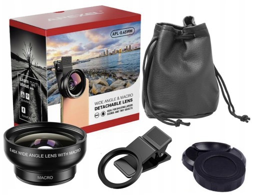 APEXEL OBIEKTYW 2W1 MACRO SZEROKOKĄTNY DO TELEFONU UNIWERSALNY MAKRO
