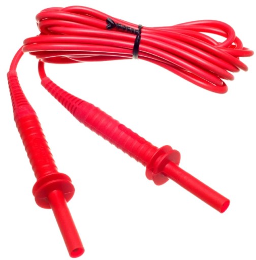 Uniwersalne przewody, które cechują się bezpieczeństwem użytkowania i wytrzymałością na uszkodzenia. Można ich używać z szeroką gamą akcesoriów pomiarowych jak np. krokodylki, sondy czy zaciski. Wtyk przewodu posiada osłonę zapewniającą bezpieczeństwo obsługi.