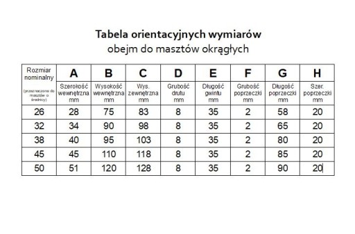 Cena dotyczy 4szt obejm o podanym w tytule rozmiarze
