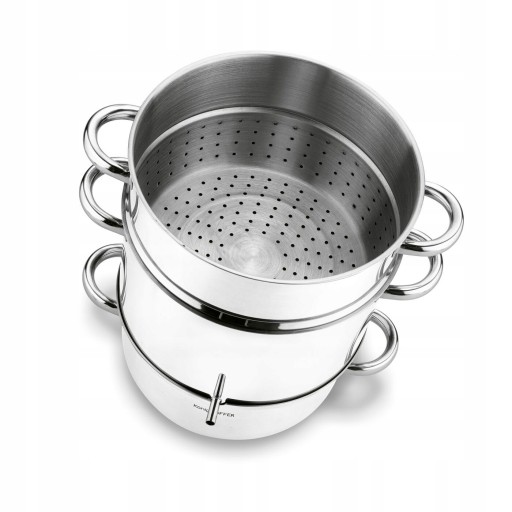 Sokownik został wykonany z wysokiej jakości stali nierdzewnej. Służy do wytwarzania soków z owoców lub warzyw przez poddawanie owoców działaniu gorącej pary wodnej. Pozostałości owoców po uzyskaniu soku, można wykorzystać do zrobienia dżemu.