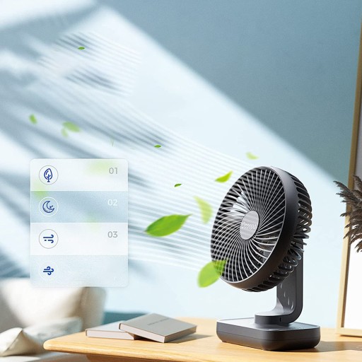 - ▶Regulowany kąt 360° – bezstopniowo obracająca się konstrukcja wału została przyjęta, aby pokazać więcej pozycji wentylatora, dmuchając gdziekolwiek chcesz, zapewniając Ci wszechstronny chłód.