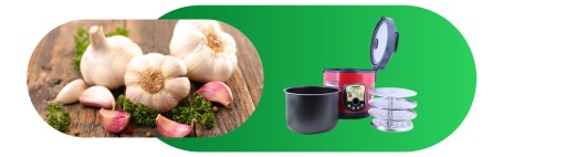 z silnych lotnych związków siarkowych. Ze względu na to, że w/w odor może być uciążliwy dla domowników, sąsiadów i osób postronnych, bardzo mocno zalecamy aby przed uruchomieniem garnka przygotować dla niego odpowiednie miejsce np. oddalone lub odrębne pomieszczenie (np. garaż) tak aby skutecznie wyeliminować uciążliwość zapachową wynikającą z wytwarzania czarnego czosnku