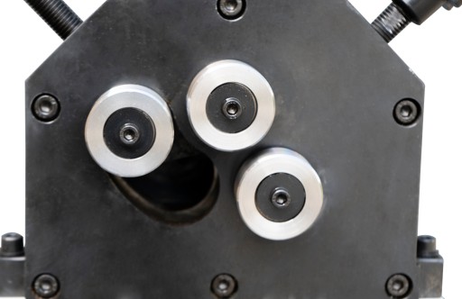 - Unikalna regulacja: Trzywałkowa giętarka pozwala na gięcie po obu stronach dolnego wałka, oferując więcej opcji promienia.