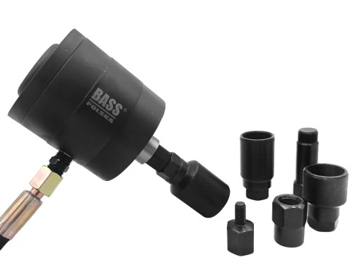 Zestaw zawiera ściągacz pneumatyczny wraz z wieloma adapterami - między innymi: