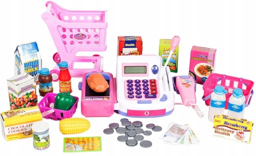 Przeznaczona jest dla każdego dziecka, dla chłopca jak i dziewczynki. Kasa posiada w zestawie szufladę z monetami i banknotami, "czytnik kart", kartę płatniczą, przesuwaną taśmę sklepową, "mikrofon"(imitacja), wózek na kółkach, koszyk na zakupy, banknoty papierowe i monety plastikowe, oraz inne akcesoria (warzywa, owoce, cukier, woda mineralna, mleko, ketchup, sok i inne).