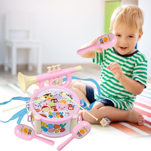 Zestaw instrumentów muzycznych dla dzieci. Zabawka bębenkowa. Zabawka edukacyjna do wczesnej nauki. Różowa