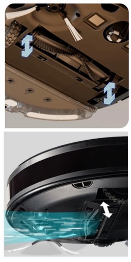 - Automatyczne i dokładne czyszczenie dzięki szczotce głównej, szczotce bocznej i mocnemu silnikowi