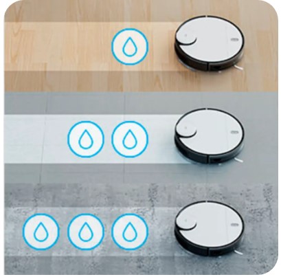 Medion X40 SW zawsze czyści dokładnie według Twoich życzeń. Dotyczy to również ilości wody zużywanej w trybie wycierania. Za pomocą aplikacji możesz po prostu wprowadzić żądaną ilość wody w zależności od zastosowania i wykładziny podłogowej i cieszyć się świeżością bez smug. Cechy szczególne: Można regulować ilość wody w zależności od pomieszczenia lub indywidualnie regulować strefę.
