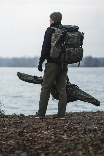 Maksymalna ochrona dla dwóch dwuczęściowych wędek wraz z kołowrotkami (bez problemu zmieszczą się również kołowrotki o dużej pojemności). Wysokiej jakości i szerokie zamki błyskawiczne na całej długości, które zapewnią długą żywotność tego pokrowca. Wykonanie w atrakcyjnym wzorze kamuflażu i zastosowany materiał nylon 210D z wodoodporną konstrukcją. Oczywistością jest wyściełana konstrukcja, która zapewnia maksymalną ochronę prętów z kołowrotkami. Główny pasek na ramię ma regulowaną długość i jest częściowo wyściełany. Z jednej strony znajdują się dwie kieszenie, ta dłuższa jest przeznaczona na podbierak, a ta krótsza na widelce. Z drugiej strony znajdziesz częściową kieszeń z paskiem ściągającym do mocowania parasola. Ten pokrowiec jest przeznaczony do dwóch dwuczęściowych wędek karpiowych o długości 3,6m (12ft).