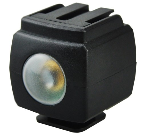 Optyczny wyzwalacz lampy błyskowej Slave do wyzwalania drugiej lampy błyskowej bez opóźnień. Do lamp błyskowych mocowanych na stopce — przewód nie jest wymagany. Zasięg: 20 m (66 stóp) w zależności od współczynnika błysku używanej lampy błyskowej i jasności otoczenia.