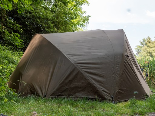 Drzwi wejściowe mają wodoodporny panel, moskitierę i zdejmowane okno mikowe. W przedniej części znajdują się praktyczne pętle, przeznaczone do trzymania wędki. W zestawie z płaszczem znajdują się kołki do wiercenia i opakowanie transportowe.