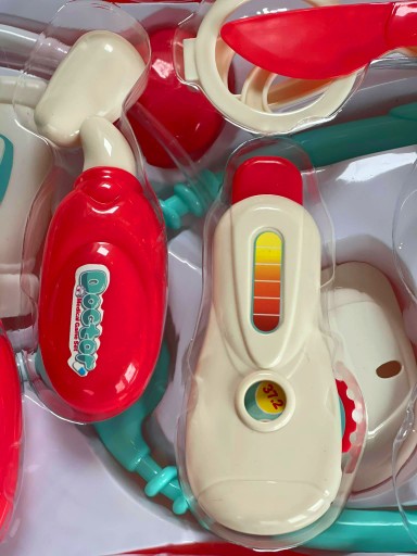 Zestaw Małego Lekarza od Woopie to marzenie każdego małego dziecka, które chce zostać lekarzem! Zestaw zawiera wiele przyrządów do leczenia m.in. stetoskop, termometr, strzykawkę i wiele innych akcesoriów. Przyrządy posiadają specjalne funkcję przez co dziecko będzie mogło poczuć się jak prawdziwy doktor. Termometr pokazuje wynik (zmiana pokrętłem), a strzykawka działa jak prawdziwa. Cały zestaw jest zapakowany w śliczną walizkę, która pozwoli przenosić zestaw w różne miejsca oraz pozwoli dzielić się wiedzą z innymi dziećmi. Dziecko może rozwinąć wyobraźnie i wcielić się w rolę doktora albo pacjenta!