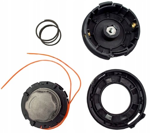 Wymiana żyłki w tej głowicy odbywa się bez konieczności rozbierania głowicy.
