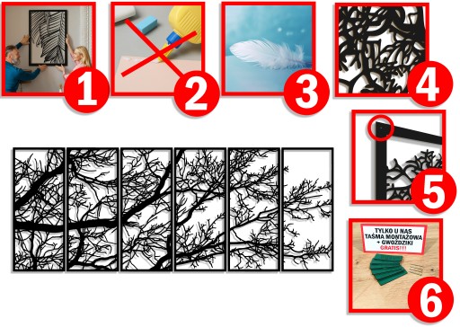 - W komplecie zestaw taśm montażowych samoprzylepnych i gwoździków ( 2 sposoby montażu do wyboru !!! ) dzięki którym super łatwo powiesisz obraz
