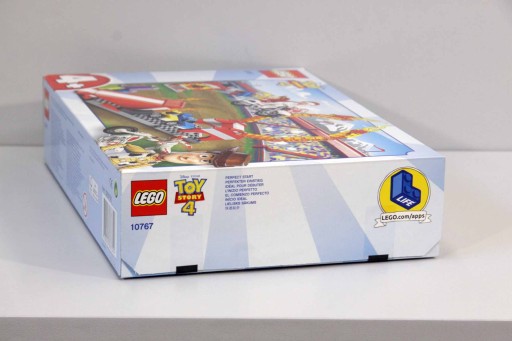 Ten fajny zestaw zawiera płonącą obręcz i pasiastą rampę z luką, w której można ustawić samochody, a także dwie podstawki startowe, które pozwolą Twojemu dziecku szybko zabrać się do budowania z klocków LEGO® i zabawy w emocjonującym świecie filmu „Toy Story 4” wytwórni Disney Pixar.