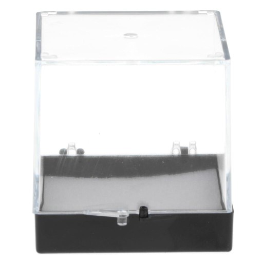 Przezroczysta, pyłoszczelna gablota o wymiarach 6,5 x 6,5 x 7 cm na kolekcję skał i minerałów