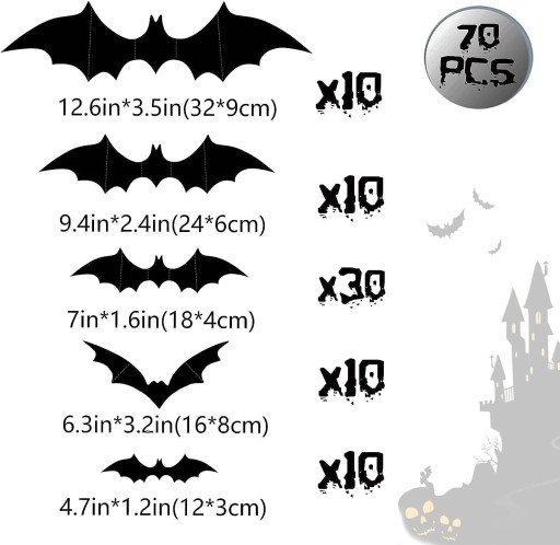 УКРАШЕНИЯ ДЛЯ ХЭЛЛОУИНА 3D НАКЛЕЙКИ С ЛЕТУЙ ЛЕТОЙ ЛЕТОЙ 70 ШТ.