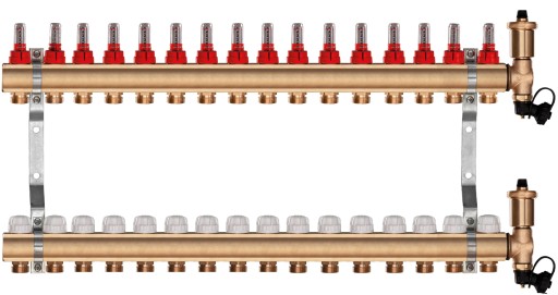 Rozdzielacz do podłogówki mosiężny z zestawem odpowietrzającym na 16 obwodów