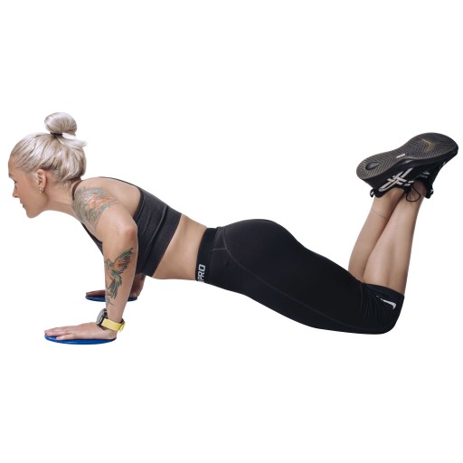 - ✅Odpowiedni materiał pozwala na płynne ruchy po parkiecie, podłogach w salach gimnastycznych i panelach. Dzięki nim zrobisz brzuszki czy wypady w wersji "slide" – efektywniej, angażując mocniej, niż przy tradycyjnych ćwiczeniach, mięśnie całego ciała.