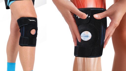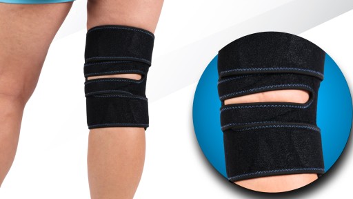 - Orteza wyposażona w osłonę rzepki z masy silikonowej pozwala na zmniejszenie jej ucisku oraz kontroluje tor ruchu w stawie rzepkowo-udowym, pierścień z masy silikonowej stanowi dodatkową ochronę rzepki