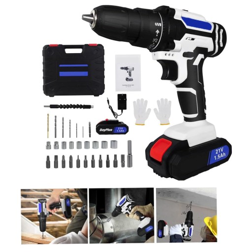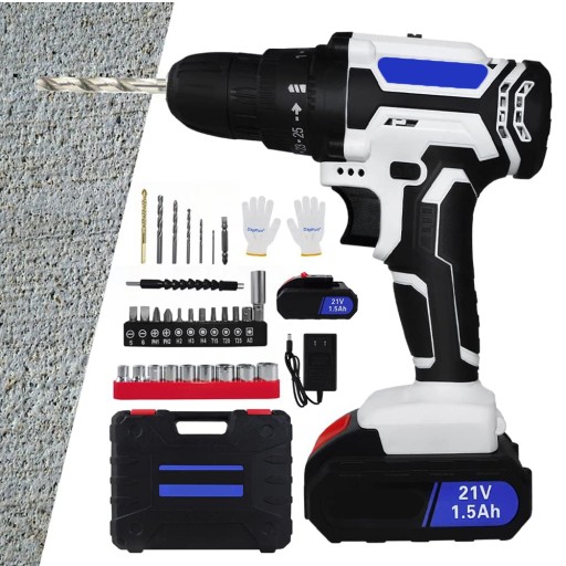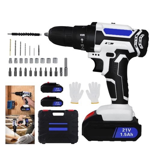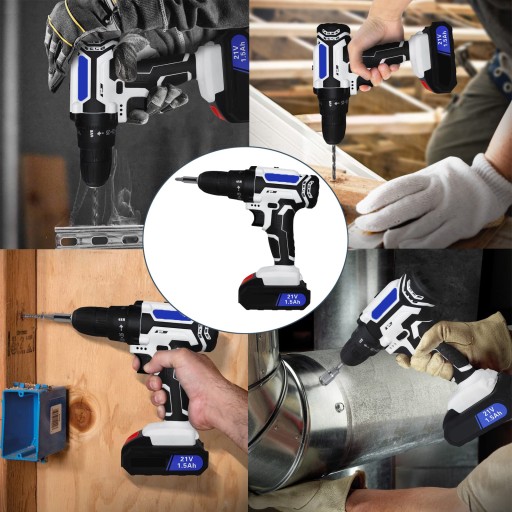 Wiertarka akumulatorowa jest wyposażona w 2 akumulatory litowe 21 V 1500 mAh i szybką ładowarkę, jeden akumulator można w pełni naładować w zaledwie 90 minut, co nadaje się do długich godzin pracy.