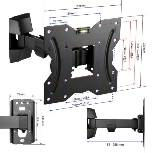 OBROTOWY RUCHOMY UCHWYT WIESZAK NA ŚCIANĘ Z REGULACJĄ VESA