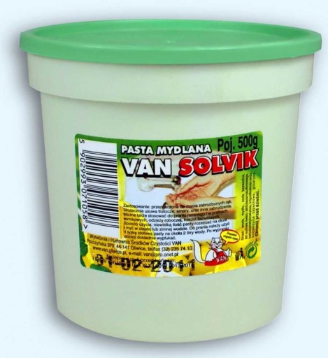 Pastę VAN – SOLVIK mydlano – piaskową stosuje się na wilgotne ręce myjąc je aż do usunięcia zabrudzeń. Ręce opłukać wodą. W razie konieczności mycie powtórzyć. Stosuje się ją do usuwania uporczywych zabrudzeń, takich jak: smary, farby, lakiery, sadza, pył węglowy, produkty bitumiczne itp. Szczególnie polecana do zastosowania w przemyśle, górnictwie, rzemiośle itp.