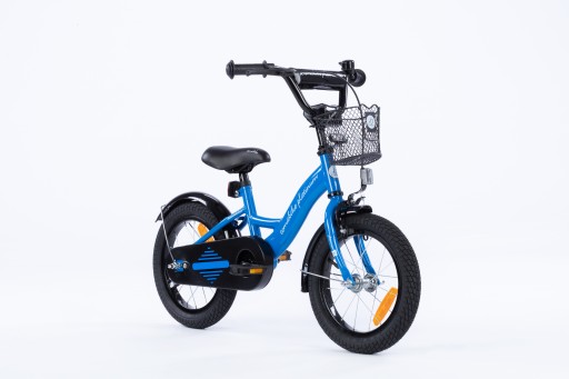 Rowerek dziecięcy typu BMX z pompowanymi 14 calowymi kołami. Posiada on stalową ramę, solidne i dokładne wykonanie. Dodatkowo w wyposażeniu znajduje się koszyk, gumowe rączki, dzwonek, prowadnik, oraz kółka boczne dzięki czemu ułatwiają one utrzymanie równowagi dla dziecka, które uczy się jazdy rowerem. Dzięki prowadnikowi, rodzic może asekurować pociechę podczas jazdy. Dodatkowe odblaski, pianka ochronna na kierownicy oraz brak tępych krawędzi i osłona łańcucha powodują, że rowerek jest bezpieczny dla dziecka jak i widoczny dla otoczenia.