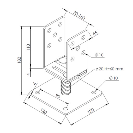 ✅ materiał – blacha ze stali klasy S235, grubość 4 mm, pręt gwintowany fi 20
