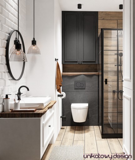 - W łazience ma być prysznic bez brodzika, duża umywalka, wc i bidet, pralka o szerokości 60 cm w zabudowie;