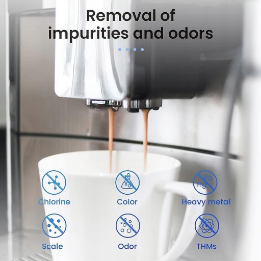 Improves Coffee Flavor- The coconut shell activated carbon with well-developed pores and good adsorption performance can effectively remove impurities, scale, odor, residual chlorine, volatiles and heavy metals (Pb, Hg) to ensure a deeper purification of clean water, sodium-free exchange resin softens water, and retains minerals that are important for maintaining a balanced diet and healthy life-style.