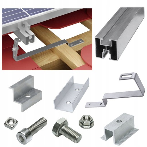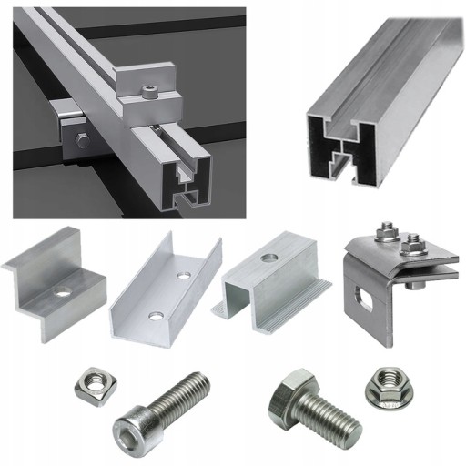Nasza oferta obejmuje m.in. profile montażowe, śruby i nakrętki, adaptery, łączniki, haki dachowe, uchwyty montażowe, klemy końcowe i środkowe, kątowniki aluminiowe, mostki trapezowe oraz trójkąty montażowe.