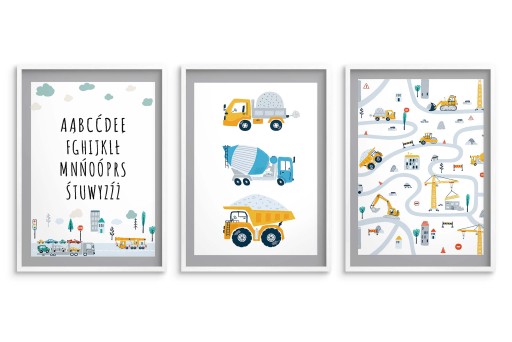 Zestaw Plakatów dla dziecka Alfabet Auta Dziecięce Obrazy dla Chłopca 50x70