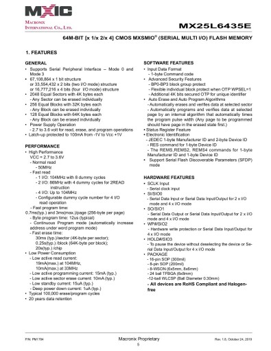 ПАМЯТЬ Serial NOR Flash 3V 64Mb 16Mx4, SPI SOP-8 - Macronix MX25L6435E