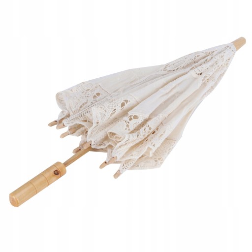 2. Powierzchnia parasola wykonana jest z wysokiej jakości koronki, a uchwyt wykonana jest z eukaliptusa.