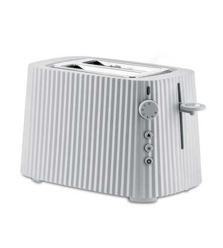 Toster marki Alessi z kolekcji Plissé przekonuje wysoką funkcjonalnością i niepowtarzalnym wyglądem. Dzięki sześciu stopniom opiekania i zintegrowanej funkcji zatrzymywania, rozmrażania i podgrzewania każdy kawałek tostu stanie się indywidualną przyjemnością. Z drugiej strony funkcja bajgla podgrzewa tylko jedną stronę tostu. Ponadto podstawa urządzenia jest antypoślizgowa, a wysuwana tacka na okruchy ułatwia czyszczenie. Aby zapobiec plątaniu się kabla, zintegrowany kabel można owinąć wokół dolnej podstawy tostera. Obudowa jest - charakterystyczna dla kolekcji Plissé - ozdobiona pionowymi nacięciami, co zapewnia elegancki wygląd i przyciąga wzrok na każdej zabudowie kuchennej. Obiekt projektowy został stworzony przez Michele De Lucchi. Toster składa się z termoplastycznej obudowy i wewnętrznych elementów ze stali nierdzewnej. Wymiary: wysokość 25 cm, szerokość 30 cm, głębokość 18.5 cm, przewód 100 cm, moc 850 Watt.