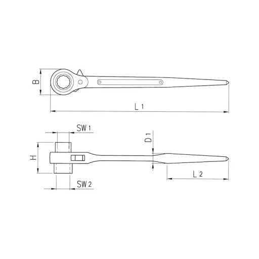 Dwustronny, z dwoma rozmiarami szczęk, stal chromowo-wanadowa