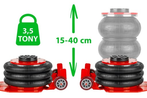 Podnośnik pneumatyczny poduszkowy tzw. bałwanek o maksymalnym udźwigu 3,5 tony i regulowanej i wysokości podnoszenia od 15 - 40cm.