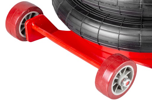 Bałwanek wyposażony w 2 koła oraz w ogumowany uchwyt dzięki czemu jest wygodny w przenoszeniu oraz w pozycjonowaniu pod pojazdem.