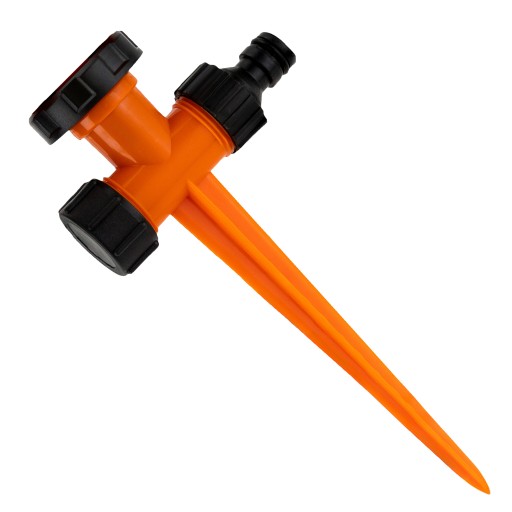 ⭐️ Zraszacz posiada stabilną konstrukcję, którą umieszcza się bezpośrednio w ziemi za pomocą długiego szpikulca. Dodatkowo za pomocą obracanych końcówek możliwa jest regulacja obszaru działania w górę i na boki. Każde ramię posiada 4 dysze w różnych kierunkach (łącznie 12), umożliwiających zraszanie na odległość ok. 13 m. Jest bardzo prosty w montażu – wystarczy wbić go w ziemię i podłączyć do węża ze standardową złączką 1/2’’.