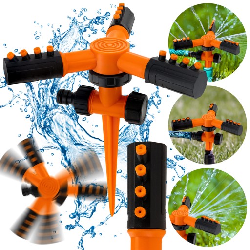 ✅ ZRASZACZ OGRODOWY OBROTOWY 360° REGULOWANY TRYSKACZ 3-RAMIENNY WBIJANY
