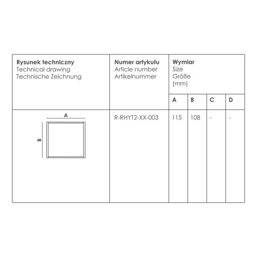 - Wymiar zewnętrzny: 115 x 108 mm(1 moduł 115 x 108mm)