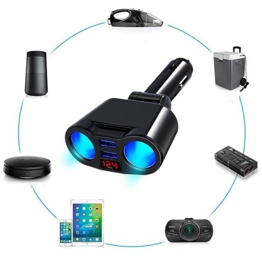 ✅ ROZDZIELACZ / ŁADOWARKA DO GNIAZDA ZAPALNICZKI NA 2 GNIAZDA 12/24 V