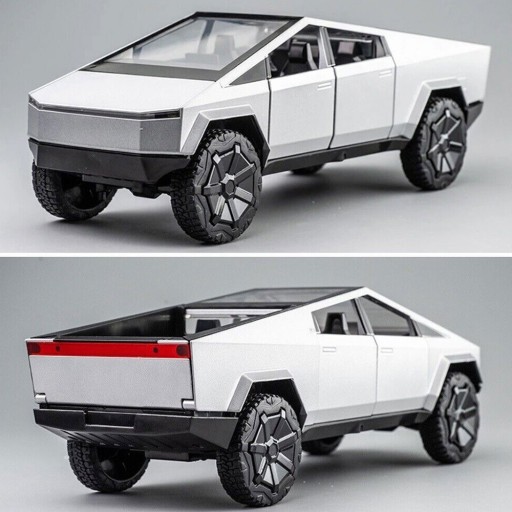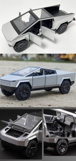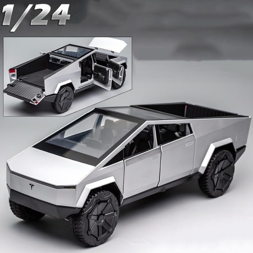 МОДЕЛЬ АВТОМОБИЛЯ TESLA CYBERTRUCK 1:24 ИЗ АЛЮМИНИЕВОГО СПЛАВА С ФАРАМИ И ДВЕРЯМИ