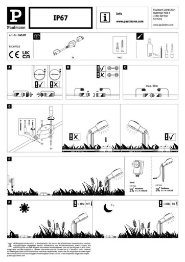 W porównaniu z innymi systemami, które pracują z napięciem 220 V AC i wymuszają konieczność okablowania, kompletny zewnętrzny system Plug & Shine jest zasilany napięciem 24 V DC. Kable zasilające 24 V dla poszczególnych elementów systemu można układać bezpośrednio na podłodze lub w ziemi. W ten sposób prace związane z okablowaniem, tak jak w systemach konwencjonalnych, mogą zostać pominięte. Umożliwia to łatwe planowanie i realizację instalacji świetlnych. Bezpieczny system oświetlenia 24 V oferuje kompleksowe zabezpieczenie przed wodą oraz najwyższe bezpieczeństwo podczas instalacji i użytkowania.