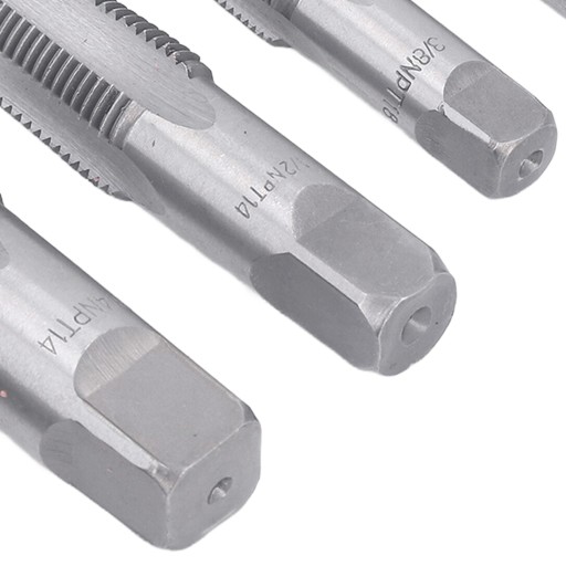 3. Dokładne cięcie: Te gwintowniki NPT wykorzystują precyzyjnie szlifowane gwinty z prawoskrętnym cięciem, okrągłym chwytem z kwadratowym końcem i 4 prostymi rowkami. Cechy te razem zapewniają dokładność i wydajność gwintów rurociągów.