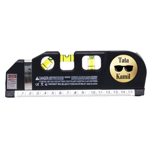 - Laserowa poziomica pozwalająca wyznaczać płaszczyzny pionowe, poziome i nachylone pod kątem 45 stopni. Wyświetla na podłożu idealnie prostą laserową linię. Dodatkowo wyposażono ją w wysuwaną metrówkę długości 250cm