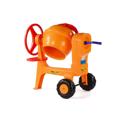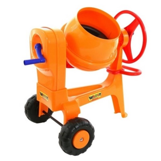 Bestseller wśród zabawek wykorzystywanych przez małych budowniczych to BETONIARKA NR 1 od firmy POLESIE WADER Quality Toys. Jest duża (jej wysokość to 67 cm), posiada duży bęben i można w mieszać przeróżne składniki w sporych ilościach. Kręcenie korbą sprawia, że bęben się obraca a wraz z nim wszystko co w środku umieszczono. Dzięki specjalnemu uchwytowi bęben betoniarki można przechylać, co umożliwi jej łatwe opróżnienie. Zabawka posiada dwa szerokie koła. Pozwala to na jej sprawne transportowanie. Produkt wykonany jest z wysokiej jakości plastiku. Możemy być więc pewni jego trwałości i bezpieczeństwa podczas użytkowania. Dostępny w pomarańczowym kolorze.