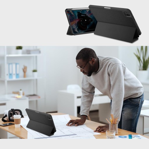 Etui zachowuje smukłe kształty urządzenia. To cienki i lekki oraz doskonale dopasowany cover, który świetnie komponuje się z tabletem, nie pogrubiając go znacząco.