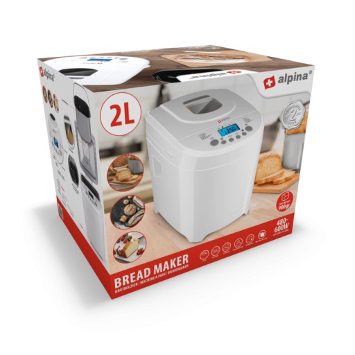 - Zawsze świeży chleb – dzięki temu automatowi do pieczenia chleba firmy alpina masz zawsze świeży chleb w domu. Podczas gdy robisz coś innego, automat do pieczenia chleba troszczy się o ugniatanie, ogród, rośnięcie, pieczenie i podgrzewanie. A co może być piękniejsze niż budzenie się świeżo upieczonego chleba?
